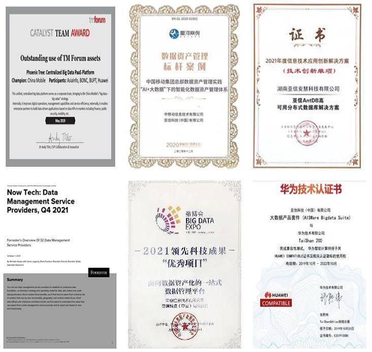 图:亚信科技部分大数据产品所获荣誉