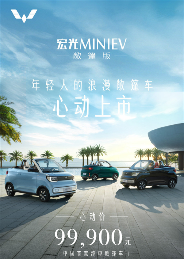 中国首款纯电敞篷车!五菱宏光MINI EV敞篷版正式上市:9.99万元