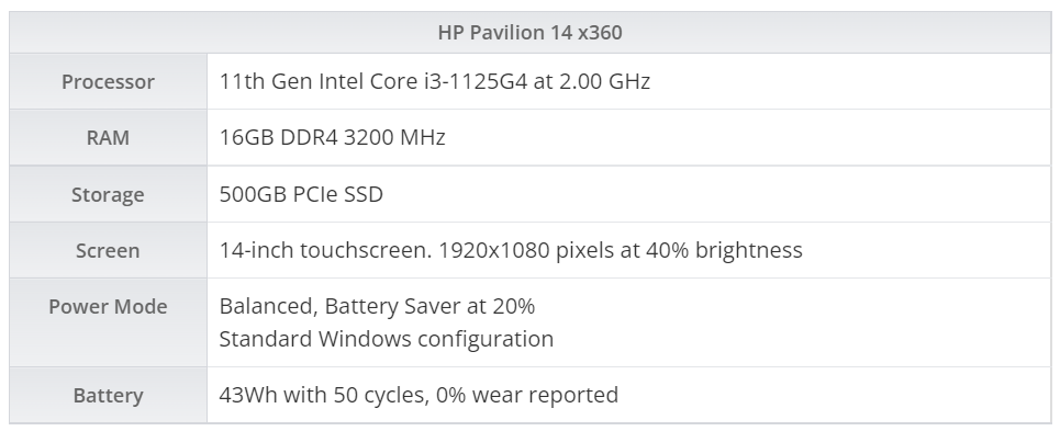 为了使测试尽可能准确,外媒在四个不同的分区上对每个系统进行了全新安装,然后将 PCMark10 Extended 从 100% 循环到电池耗尽 3 次,登录微软账户并安装了适用于每个版本的最新驱动程序,每次安装都没有额外的第三方软件,测试设备如下。