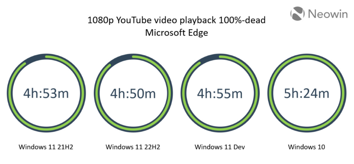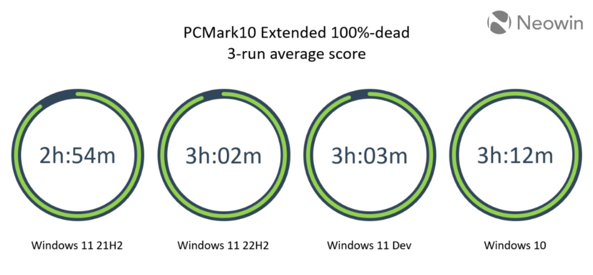 近日,外媒 Neowin 对 Windows 11 和 Windows 10 的续航进行了测试,包括: