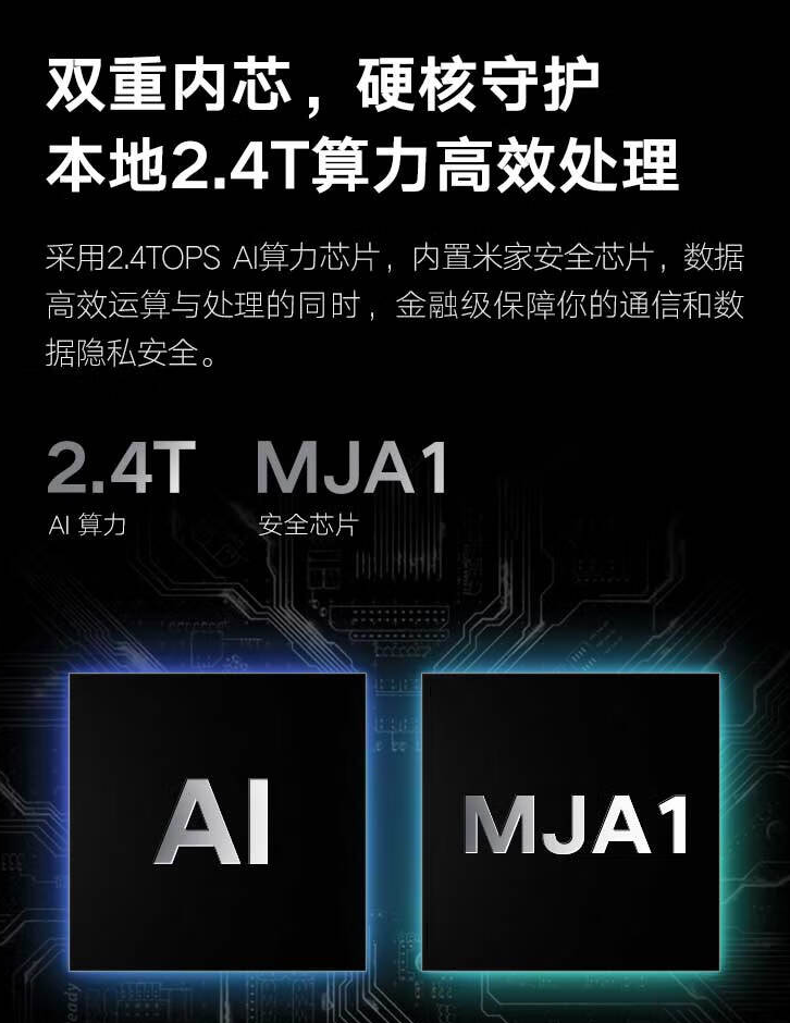 小米智能摄像机 2 AI 增强版搭载 2.4TOPS AI 算力芯片与米家定制芯片 MJA1,内置 AI 算法。小米智能摄像机 2 AI 增强版支持“宝宝看护”场景化功能,检测到宝宝睡眠哭泣或在阳台等指定区域活动时,推送通知提醒用户。