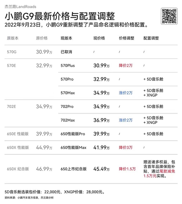 何小鹏也“慌了”。在发布会第二天早间的媒体沟通会上,几乎没睡的何小鹏对媒体称将会在1~2天内推动内部团队,针对用户反馈的问题进行调整。在9月23日下午,小鹏汽车就发布了上述价格调整方案。无法选配音乐座舱和XNGP的570G版本被拿掉,其他品类车型也进行了不同程度的降价和配置升级。