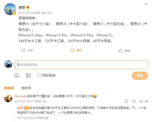 在经历了理想ONE销量下降并即将停产,L9空气悬架被传存在故障这两场风波后,特斯拉Model Y即将降价的风潮也成为了迫使该公司提前发布理想L8的原因之一。事实上,理想汽车创始人兼CEO——李想本人,都颇有些“迫不及待”地在其微博提前宣布了L8、L7乃至L6的产品尺寸。其指向性,显然不言而喻。