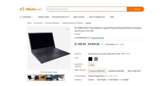 现在,搭载阿里平头哥曳影 1520 SoC 的笔记本电脑 DC-ROMA 已经上架阿里巴巴平台,这是首款 RISC-V 架构的笔记本。