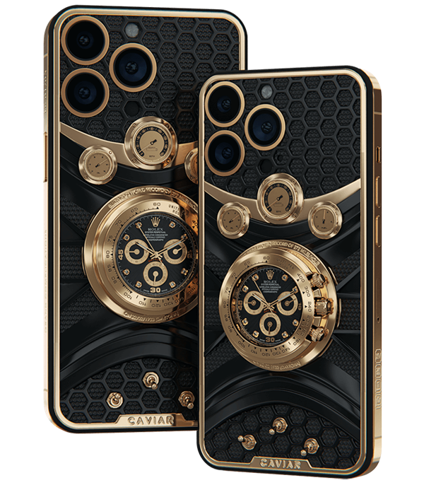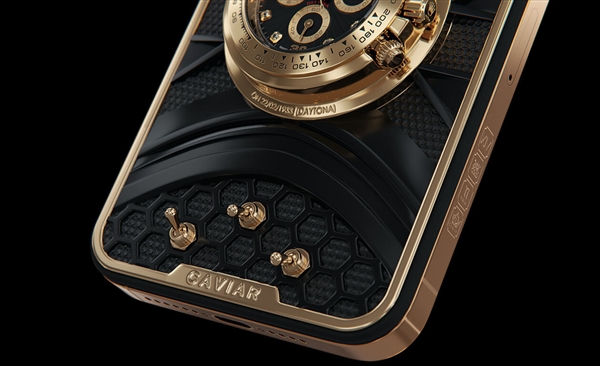 据介绍,Caviar在手机的背面镶嵌了一个真正的劳力士Cosmograph Daytona表盘,甚至还配有三个表冠。