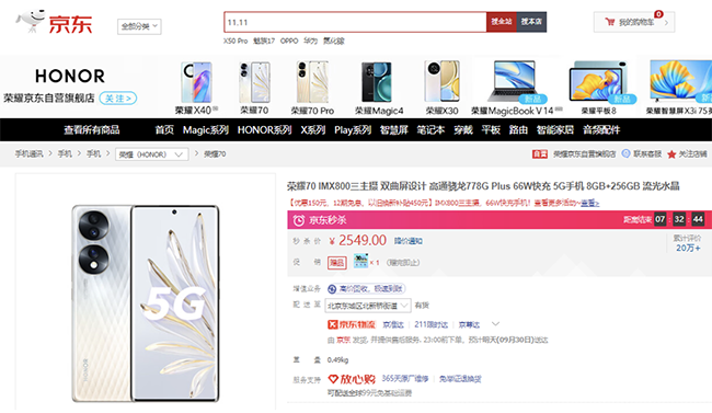 荣耀70位列京东自拍美颜手机榜第二名,也是一款相当优秀的拍照手机。荣耀70后置5400万像素IMX800视频主摄像头、5000万像素超广角微距主摄像头、200万像素景深摄像头,前置3200万像素AI超感知主摄像头,硬件实力不俗。同时,借助荣耀RAW域算法体系,HonOR Image Engine计算影像平台从底层重构荣耀70影像能力,画质大幅度提升,让消费者放心拍摄。其中,Vlog主角模式下,可智慧追焦人像并居中构图,还可同时输出两路视频画面。荣耀70京东到手价2549元起,可享12期免息,以旧换新至高补贴450元。