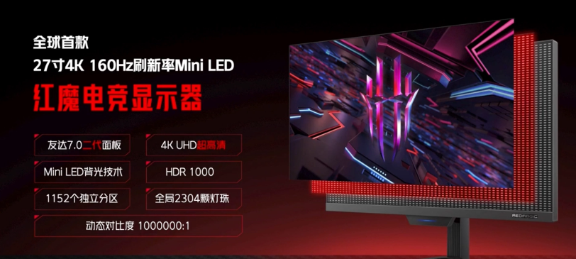 首发 4999 元起,红魔 27 英寸 4K 160Hz MiniLED 显示器开启预售