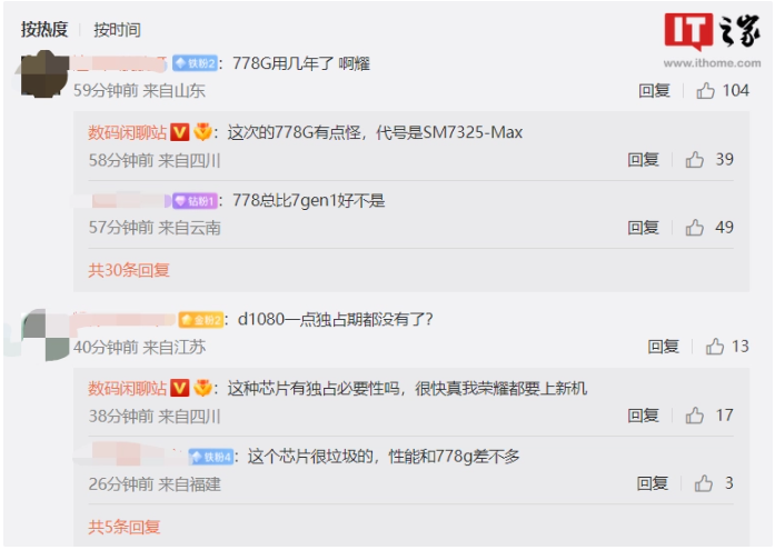 此外该博主还透露,这次的骁龙 778G 代号为 SM7325-Max,另外天玑 1080 芯片没有独占期,除了小米,realme 真我和荣耀也都要上新机。