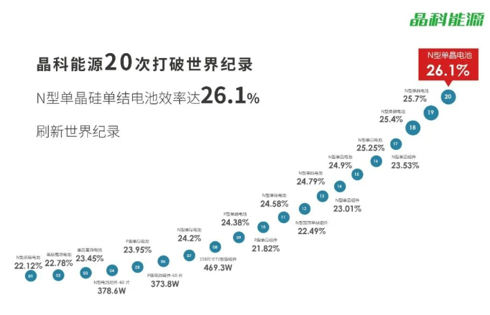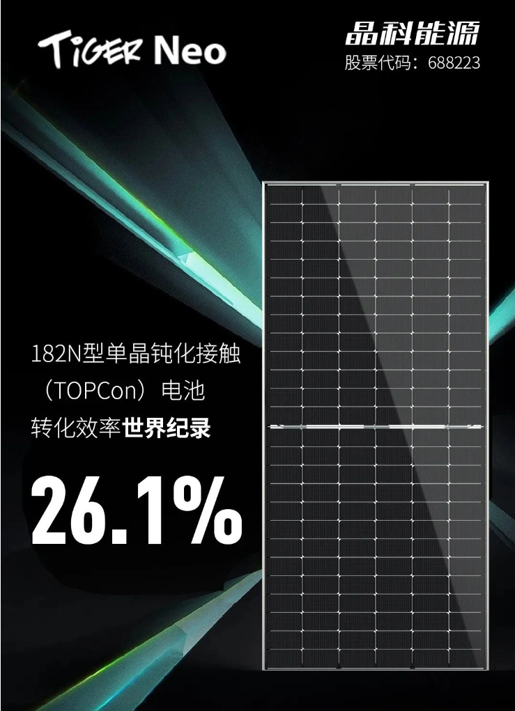 晶科能源 TOPCon 电池转化效率再创世界纪录,达到 26.1%