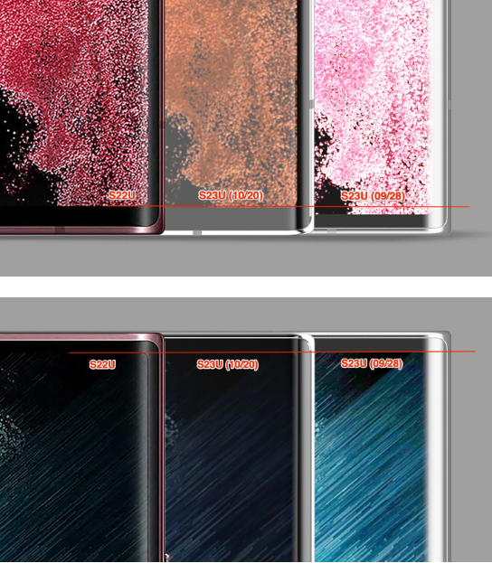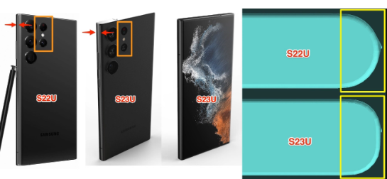 从图中可以看到,新版的渲染图在边框方面有所加宽,相比 Galaxy S22 Ultra 只是窄了一点点,并没有像此前爆料的那样大幅缩窄。