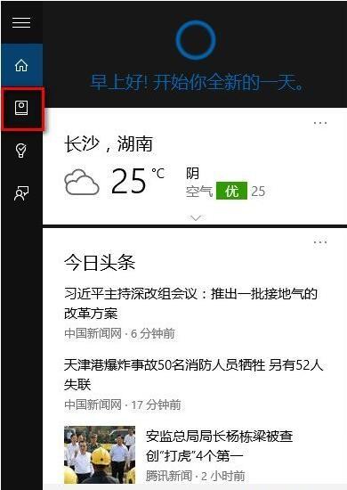 点击微软小娜输入框,弹出界面
