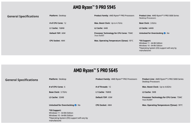 10 月 25 日消息,AMD 官网现已公布三款锐龙 5000 PRO 处理器,均为 65W TDP,预计将在用 OEM 商用机中。
