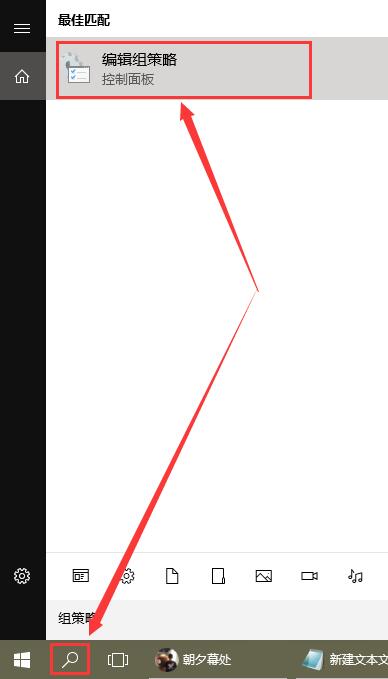 1、点击菜单旁边的搜索按钮,输入【组策略】直接搜索。
