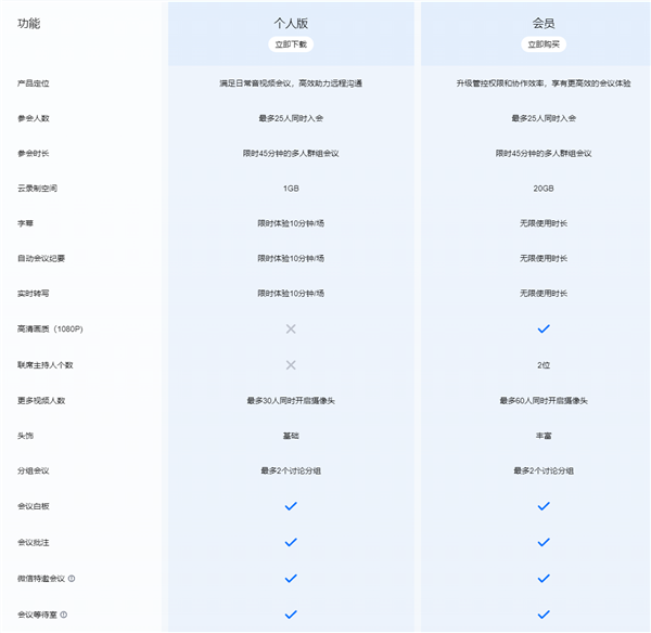 对此,腾讯会议客服人员介绍称,包括实录转换文字、设置联席主持人、调高同时在线视频人数等功能,是腾讯会议最近刚上线的收费会员服务。此前,上述服务免费是因为属于“限免测试”阶段,现在该阶段已结束。