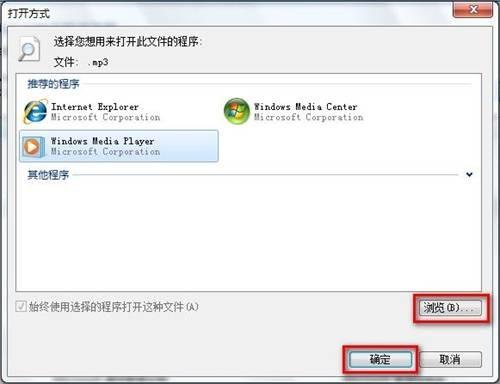 5,在程序列表中选择适合的程序,若没有找到需要程序,可以点“浏览”进行手工确定。全部修改完毕之后点“确定”结束。