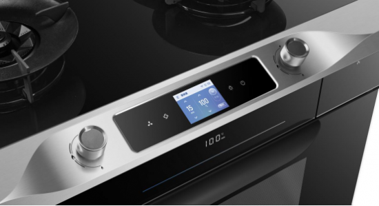 除了在蒸烤炸上的亮眼表现,老板集成灶9YC05的灶具火力也高于很多同品类产品,5.2KW的火力大小,65%的热效率,家用绰绰有余。而且这款集成灶蒸烤箱一体机还有很多人性化的设计,比如说860mm*160mm的黑晶宽屏置物台,平时做菜时放些常用的调料壶、放手机都很方便。值得一提的是,整机的功能操控均集成在了一块彩屏上,食材、腔内温度、时间、蒸烤炸功能、烹饪过程等等,均可以通过彩屏来了解和操作。并且,彩屏还特别设计成了23°倾角,方便用户操控,无需像使用以前的油烟机那般,抬着头。