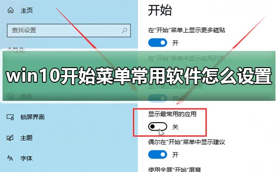 2.在“个性化“设置中,点击“开始”,设置“显示最常用的应用”为“开”。