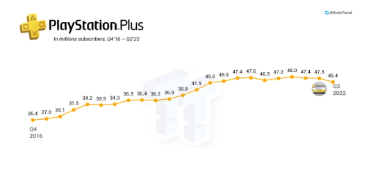 这也导致了 PS Plus 的相对弱势,从索尼财报中的数据来看,订阅制服务的推出却并未让其 PS 会员的订阅量出现显著提升,而且用户数据和口碑更是与微软 Xbox Game Pass 有着巨大的差距。