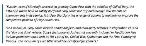 此外,即使微软通过《使命召唤》成功拓展了 Game Pass, CMA 也不得不承认索尼无法通过投资或改进服务来做出回应。但很明显,索尼也可以做出选择来维持或提高 PlayStation Plus 的竞争力。