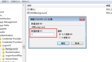 4、从【Background】右侧界面中找到【OEMBackground】,选中右击,点击【修改】选项,如果没有此项可以右侧【新建】,再选择【双字节值(DWORD)】,将名称设置成【OEMBackground】