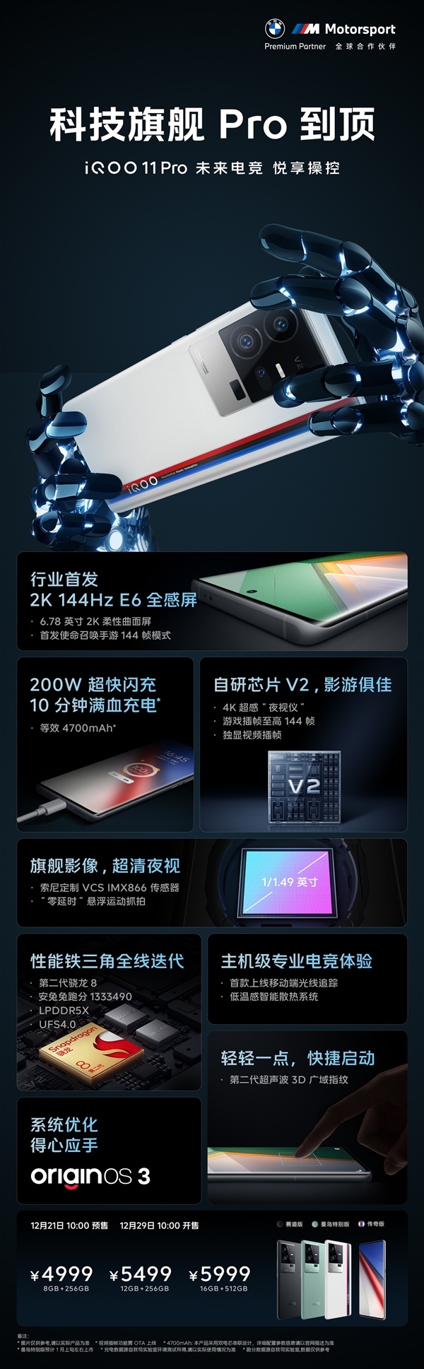 4999元 iQOO 11 Pro明天开启预售:配备2K 144Hz E6曲面屏 业界唯一一款