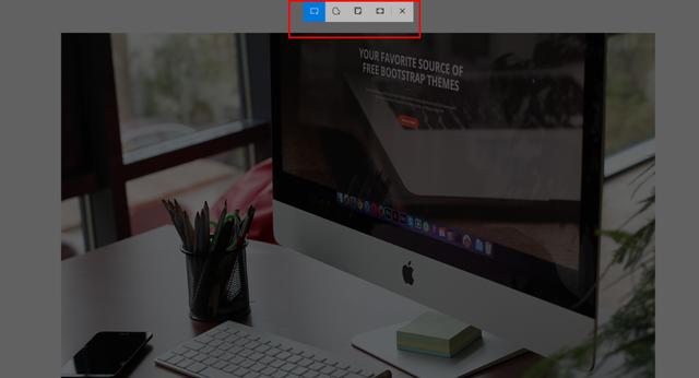 在键盘上敲击快捷键“Win + Shift + S”,顶部将出现5个选项,即:矩形截图、任意形状截图、窗口截图、全屏截图、关闭。