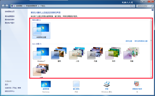 2、接着在个性化界面中就可以看到系统提供的其他壁纸主题,选择自己喜欢的更换就可以了