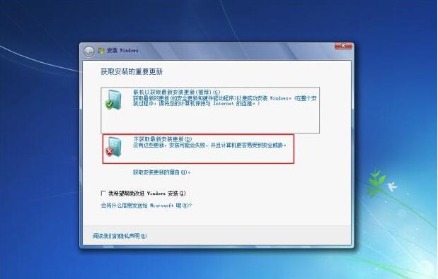 4、然后在显示的界面中选择【不获取最新安装更新】回车