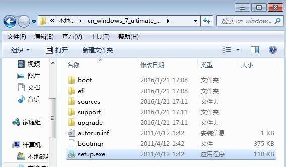 2、在解压好的镜像文件夹中找到【setup.exe】程序,双击运行