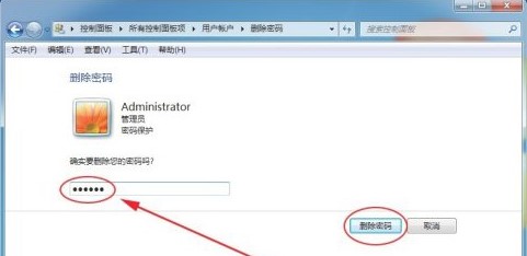 3、然后在删除密码界面中输入当前计算机密码,最后点击【删除密码】即可