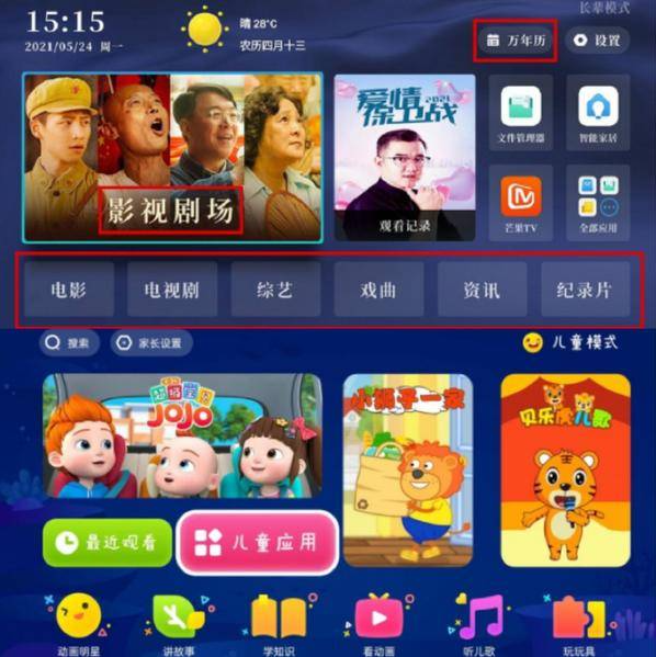 每种交互模式里面都有对应年龄段爱看的内容,比如老人模式里面有他们爱看的戏曲、还有有趣的综艺等等,同时UI首页上标有天气、日历等功能;同时当贝X3还自带远+近场语音功能,隔空喊一下就能播放喜欢的频道,过年放在家里全家都能使用,和家人一起用超大屏看春晚看综艺,年味十足。