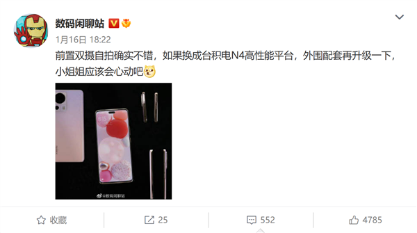 据爆料博主数码闲聊站透露,该机后续可能会推出一款“高配版”,换上台积电N4高性能平台,同时还会升级一些屏幕、扬声器、后置相机等配置。