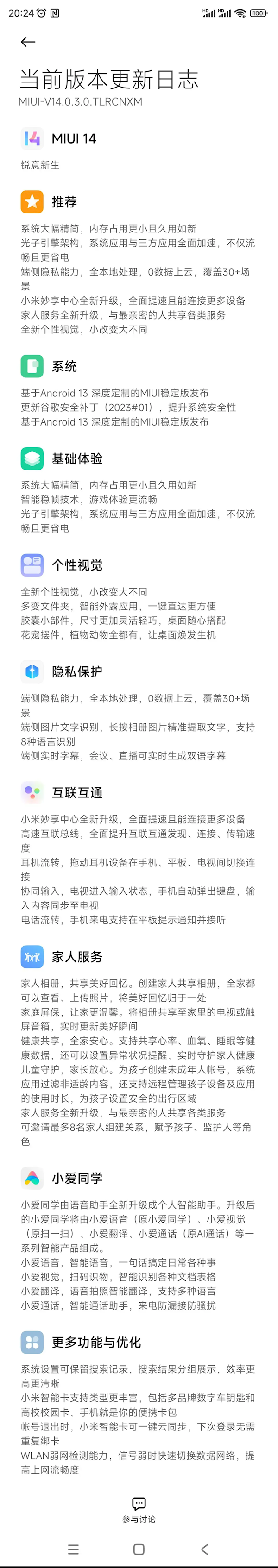 据了解,该版本基于Android 13深度定制,更新谷歌安全补丁(2023#01),可提升系统安全性。
