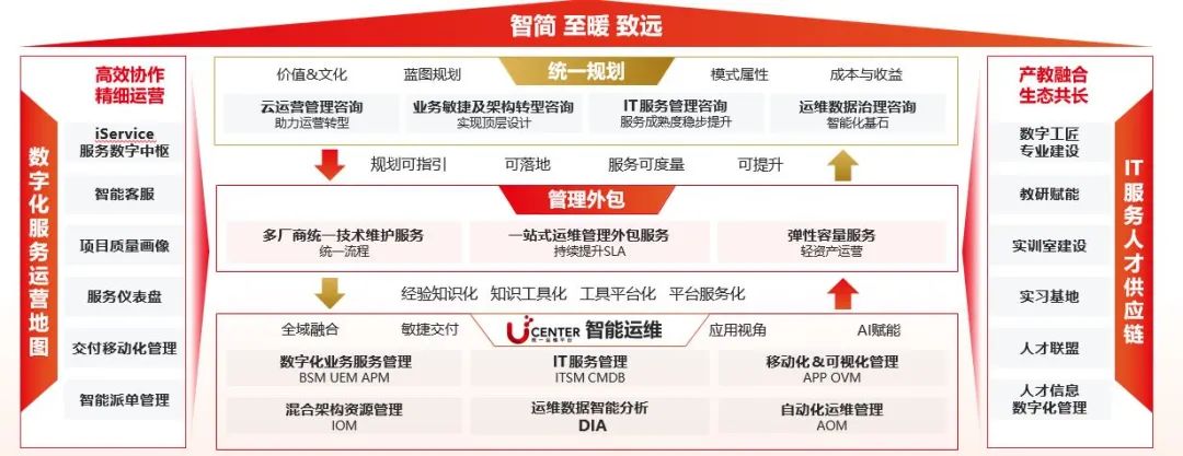 作为新华三集团面向ICT基础架构提供的一站式运维管理外包服务,AIO致力于提供“智简、至暖、致远”的IT运维服务。以客户特定技术域的现场运维为基础,AIO整合了新华三在运维领域的资源与解决方案,在服务管理咨询、运维平台与工具、智能远程运维、技术运维,为客户提供整体运维能力输出,并可根据客户具体需求和行业特性进行服务模块的灵活组合,带动客户全面提升IT的整体服务管理水平。