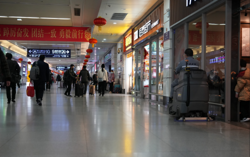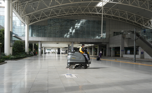 上海虹桥站、杭州东站和南京南站等特等高铁车站的候车大厅空间巨大,春运期间的人流量更是双倍叠加,面临着地面清洁任务重、频率高的清洁痛点。基于此,卡赫B 150、BD 90/160和B 250等中大型洗地吸干机便派上了用场。高达6000-10000+平米每小时的清洁效率,搭配较高的水箱容量、大电量储备和高触地压力,在短时间内即可完成超大面积地面的日常保洁作业,同时杰出的污水回收能力可以确保通道地面在清洁后可立马投入使用。