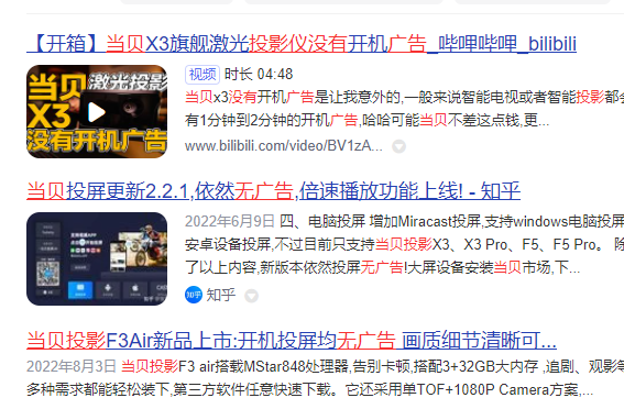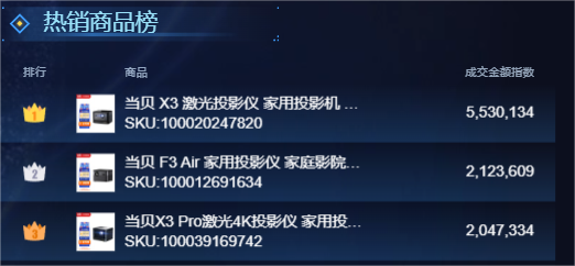 当贝在激光投影的市场份额更是一直位居榜首,2022年1-8月销量份额达48%,接近市场总销量的50%,较去年同期增长14%;2022年1-8月当贝旗下的激光投影X系列销量同比增长达到62%,主力贡献机型为X3、X3 Pro。其中当贝X3凭借3200ANSI流明亮度位列单品出货量第一,在3K+流明“高亮”市场的市占率超七成。