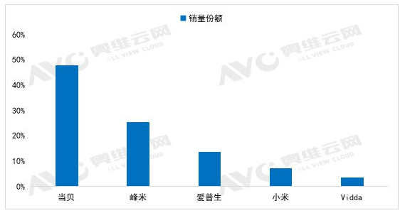 根据奥维云网发布的家用激光投影数据显示,截止到 2022 年的第三季度,我国家用激光投影市场上,市场TOP3品牌当贝、峰米、爱普生,三者合计份额达87%;TOP5品牌合计份额则达97%,行业处于高度集中状态,其中当贝投影稳居行业内第一名宝座。