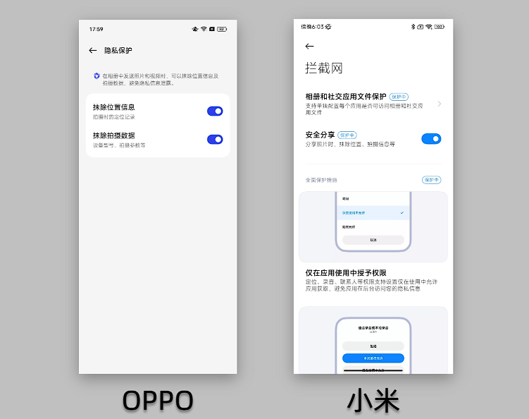 OPPO、小米也有类似的图片脱敏功能,不过藏得比较深,需要仔细找才能开启。