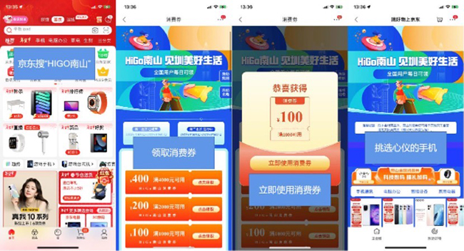 除了品牌旗舰机外,千元机也有超值优惠,例如OPPO K9x,8GB+128GB版京东价1098元,叠加南山消费券后只需998元。值得注意的是,南山消费券全国可用,只需在京东APP搜索“HIGO南山”即可进入活动页面,即日起至1月27日每天10点均可领取。同样可享优惠的还有iQOO U5x,8GB+128GB版京东价798元。