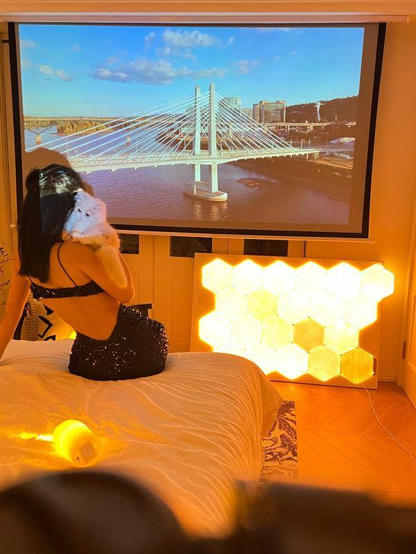 当贝D5X内置了各种很富有氛围感的背景,情人节的时候可以弄一些氛围灯,找一个超巨氛围感的背景,给女朋友拍拍照片,发个朋友圈秀一秀恩爱。