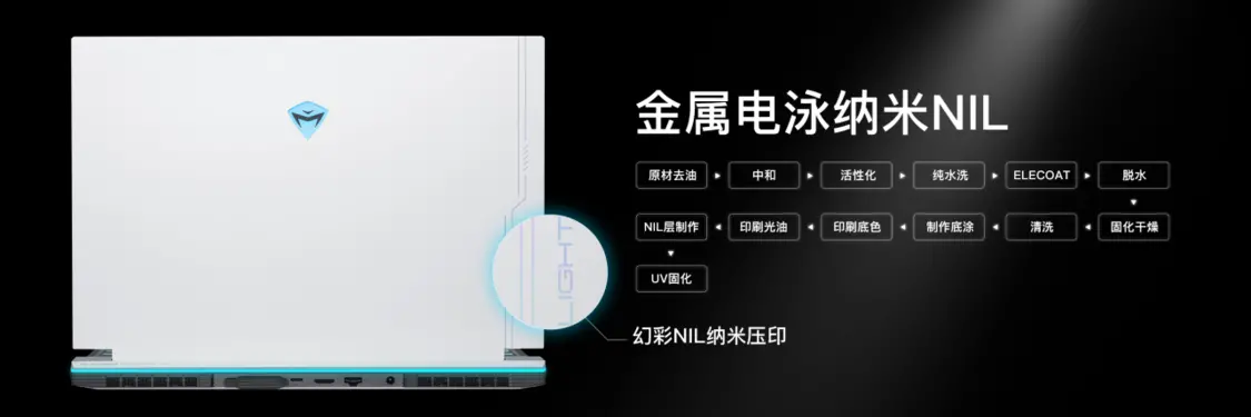 曙光白色是外观上最突破、最惊艳的一个亮点,一般白色是非常容易呈现出塑料质感并且影响使用手感,机械师研发团队通过多次尝试,最终敲定使用高强度铝镁合金材质,阳极白色电泳工艺七大步骤加持,呈现出高质感白色。为了让A壳表面外观更加丰富、美观,又通过6道工序,将具有光学效果的纹理设计,在A壳表面进行微米纹理、纳米纹理以及高光镜面的线条纳米压印。