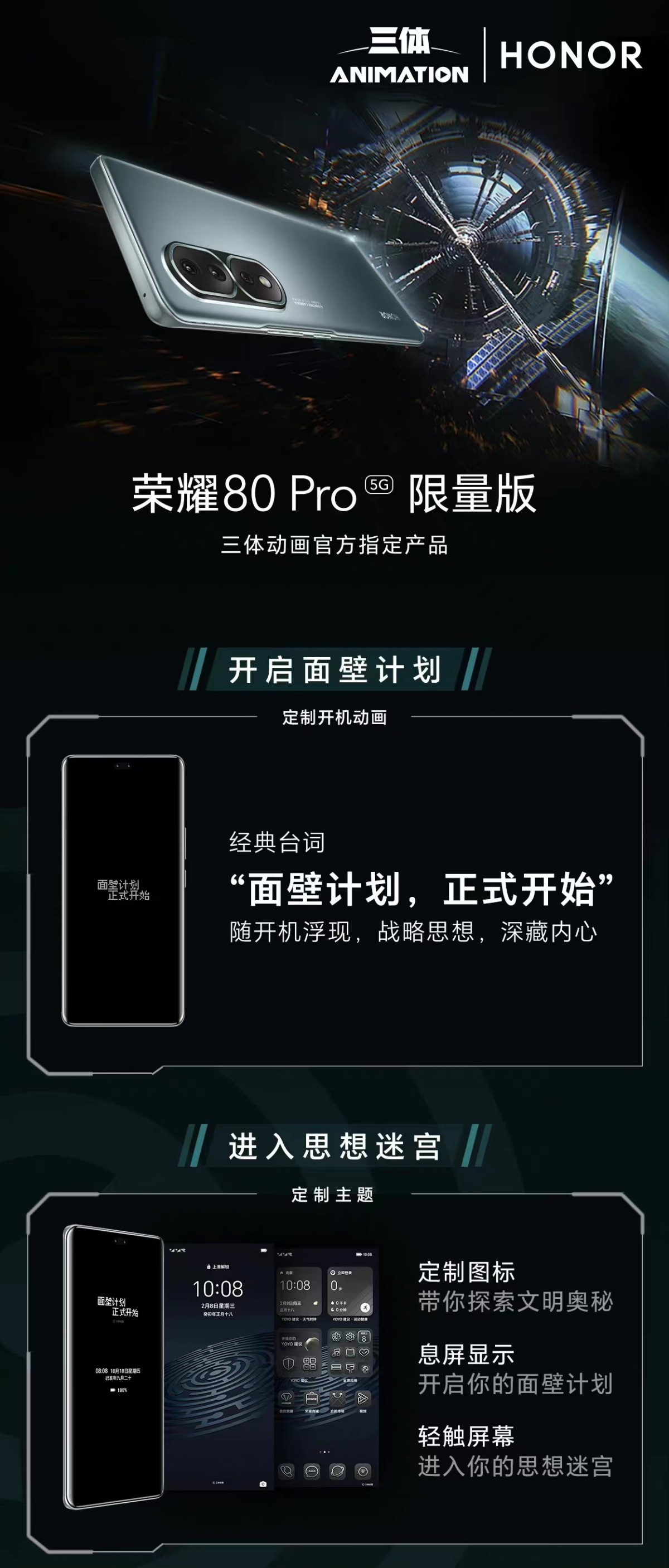 面壁计划正式开始!荣耀80 Pro联合三体动画打造限量版联名礼盒2月8日开售