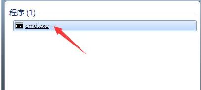 2、在上方搜索结果中找到“cmd.exe”的程序,点击运行。