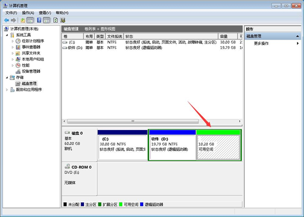 压缩完成后会出现一个可用空间,这个可用空间就是可以用来分配给其他分区的空间。
