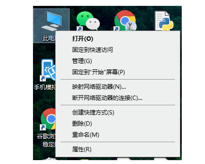 1、右键点击此电脑图标,选择属性功能点击打开。