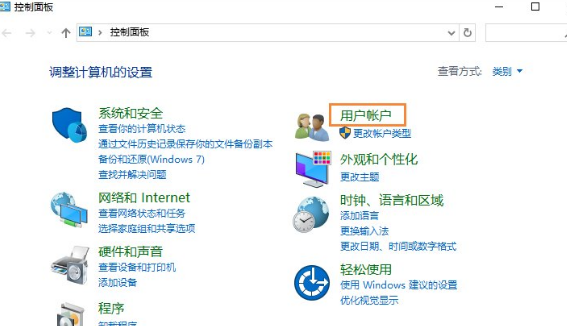 3、在点击用户账户选项进入。