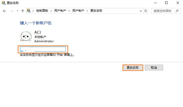 5、在这里输入一个新的名称,然后点击右下角的更改名称,在进行电脑重启即可。