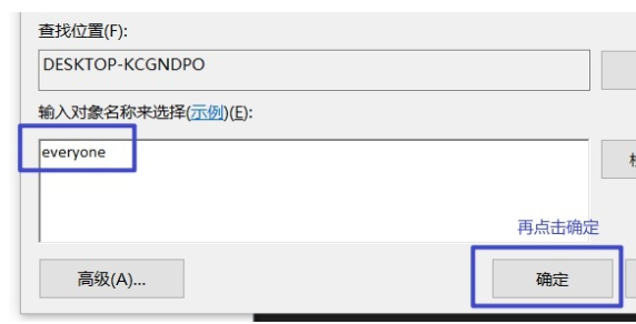 5、输入everyone名称,点击确定即可。