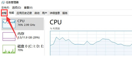 2、在任务管理器页面中点击上方的进程选项。