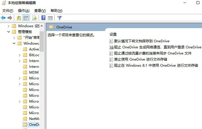 2、在打开的页面中,在左侧找到算机配置下的管理模板,然后点击Windows组件,找到OneDrive项目进行打开。